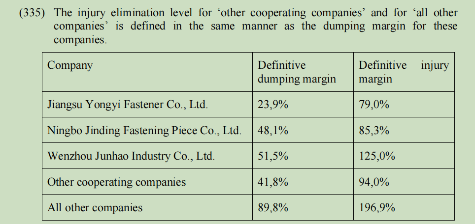 2020年12月21日,欧盟委员会发布公告称,应欧洲工业紧固件协会(European Industrial Fasteners Institute)申请,正式对原产自中国的钢铁制紧固件产品(certain iron or steel fasteners)发起反倾销调查。中国对欧盟进口碳钢紧固件反倾销措施将于2021年6月28日到期。